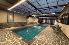 וילה משגעת עם 6 חדרי שינה מרווחים, 4 חדרי רחצה מודרניים, בריכה מקורה, מחוממת ומגודרת, מטבח חיצוני מאובזר עם פינת BBQ, שולחן אוכל ל-18 סועדים, שולחן סנוקר, פינג פונג, מגרש כדורגל ונוף הרים מרהיב