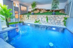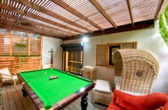 בריכה מחוממת ומקורה, שולחן סנוקר גדול, פינת BBQ בחצר.