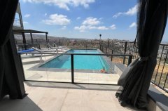 וילה מפוארת עם 5 חדרי שינה, בריכה בנויה מגודרת עם חימום, שולחן גינה מהודר ל-20 אורחים, חניה רחבה ל-10 מכוניות, פינג פונג ומשחקים לילדים, ריהוט גן חיצוני ועמדת מנגל BBQ