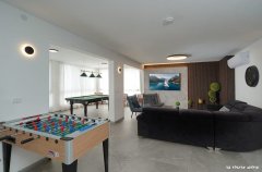 המתחם החיצוני מציע ריהוט גן חיצוני, עמדת מנגל BBQ ופינות ישיבה אידיאליות לאירוח קבוצות ומשפחות. ילדים ייהנו ממשחקי פינג פונג והוקי אוויר, בעוד המבוגרים יוכלו להירגע על ערסל מול נוף פנורמי עוצר נשימה להרים ולחרמון.